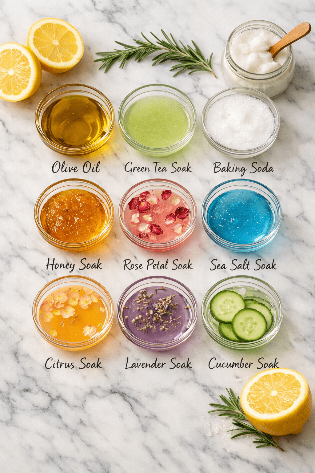 - Most DIY nail soak recipes use ingredients you likely already have at home