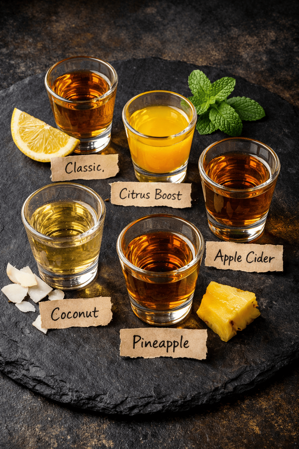 - Pick one recipe from the five above — the Classic Morning Shot if you’re a beginner, the Pineapple Shot if you want something milder
