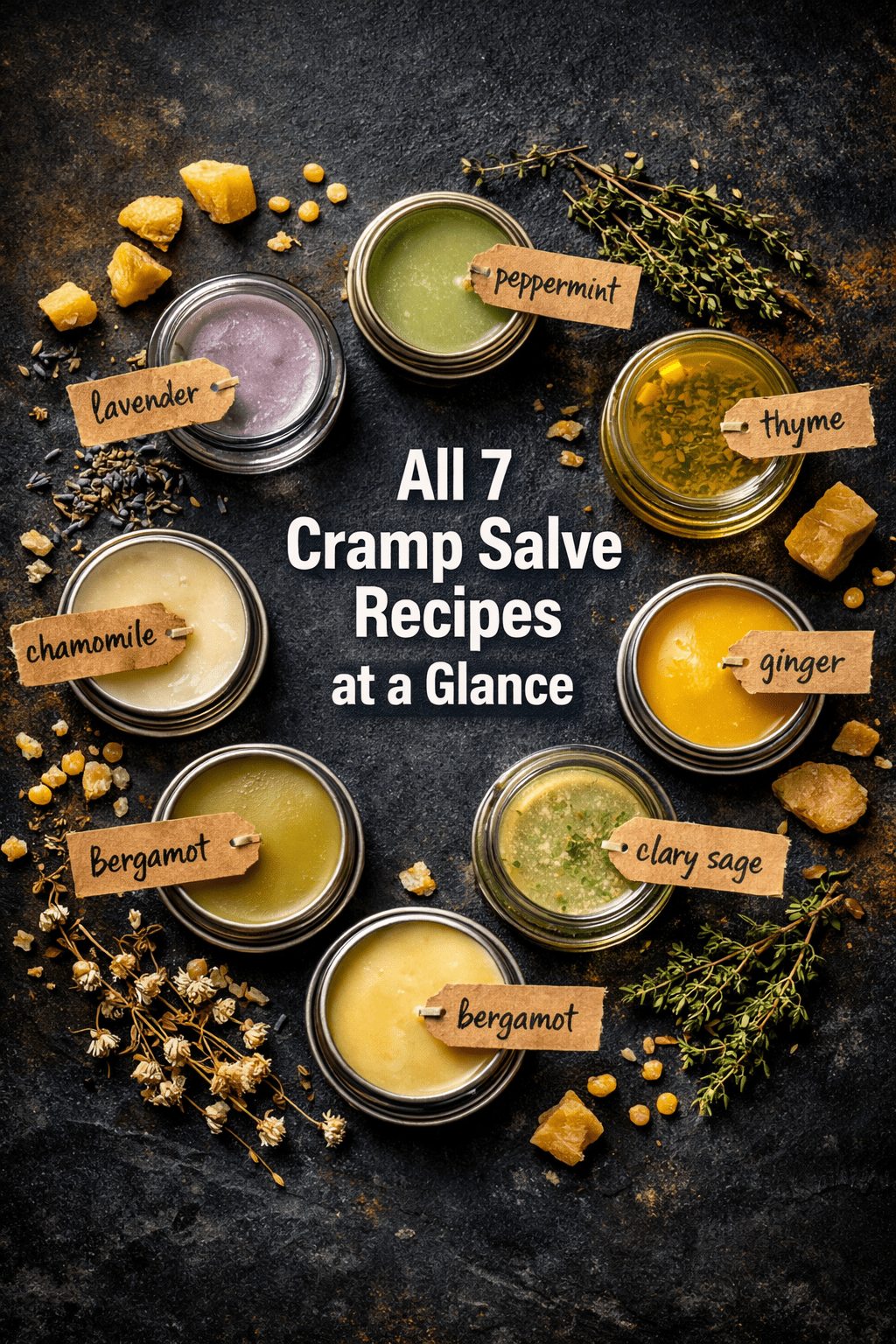 - Core ingredients for any cramp salve: beeswax (or candelilla wax for vegan versions), a carrier oil, and 2–3 targeted essential oils.