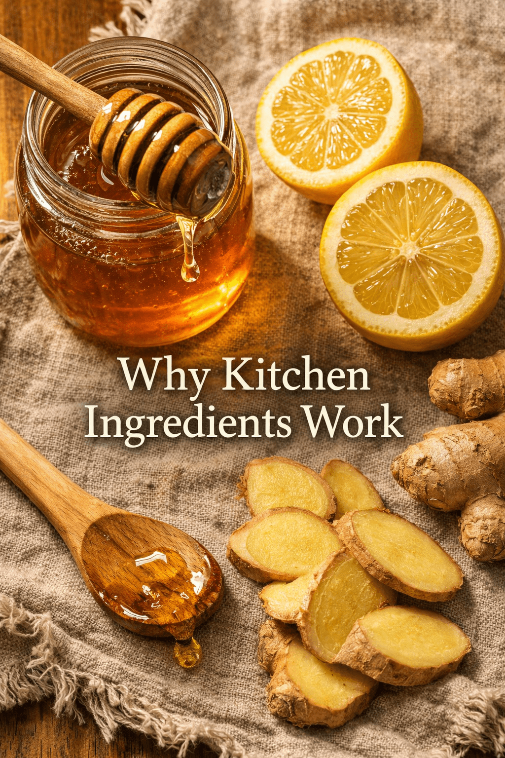 Many common kitchen ingredients contain compounds that directly affect the throat, airways, and mucus. Honey coats and soothes irritated throat tissue. Ginger contains anti-inflammatory compounds that relax bronchial muscles. Lemon provides acidity that can thin mucus and support immune function [10][8].
