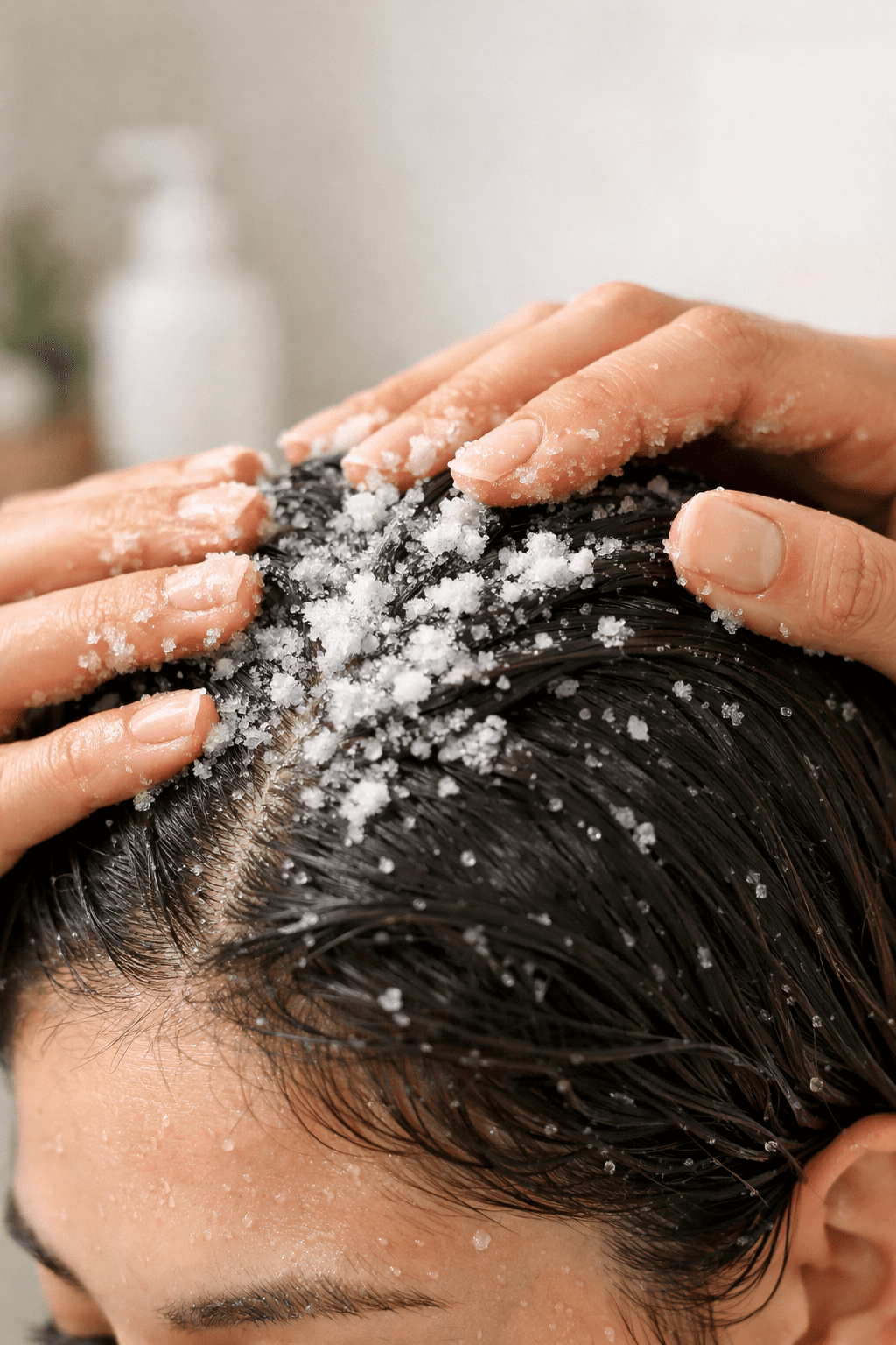 Salt scrubs are more drying and work best for oily scalps with heavy buildup, while sugar scrubs are gentler and more moisturizing, making them ideal for dry or sensitive scalps.[1] Sugar also dissolves more easily during rinsing.