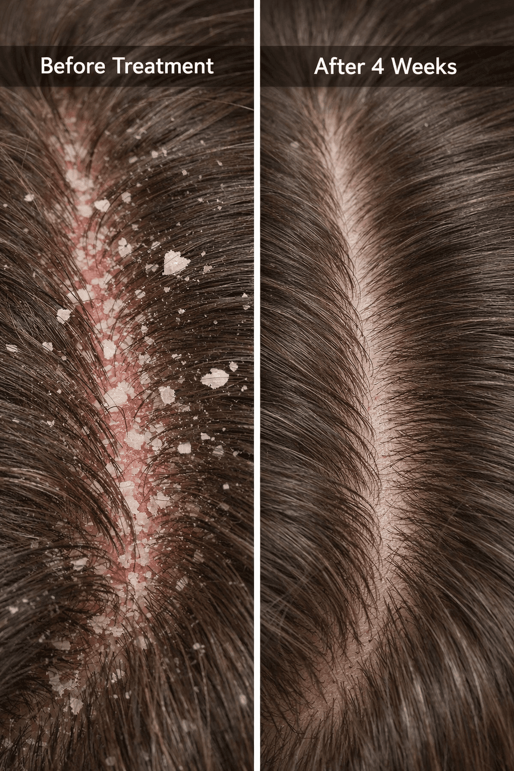 - After 2-4 weeks (4-8 treatments): Dandruff substantially controlled, healthier scalp environment, possible improvement in hair texture and shine