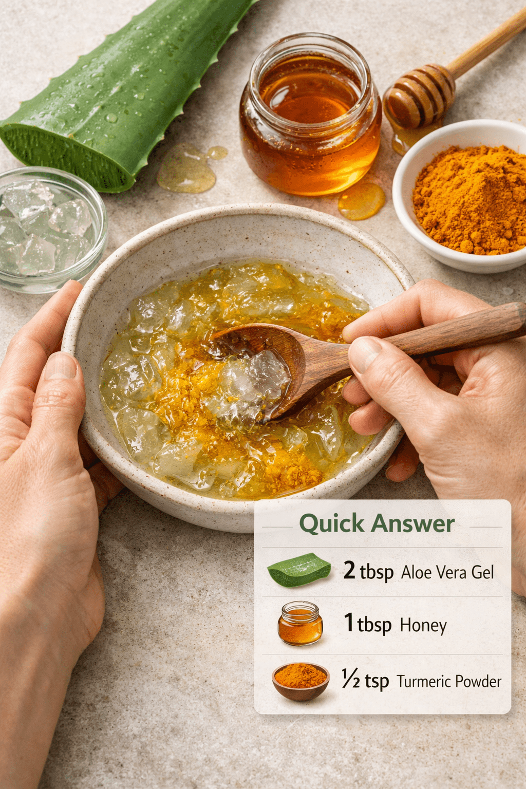- Start simple: Try the basic two-ingredient recipe (2 tablespoons aloe + 1 tablespoon honey) before experimenting with add-ins