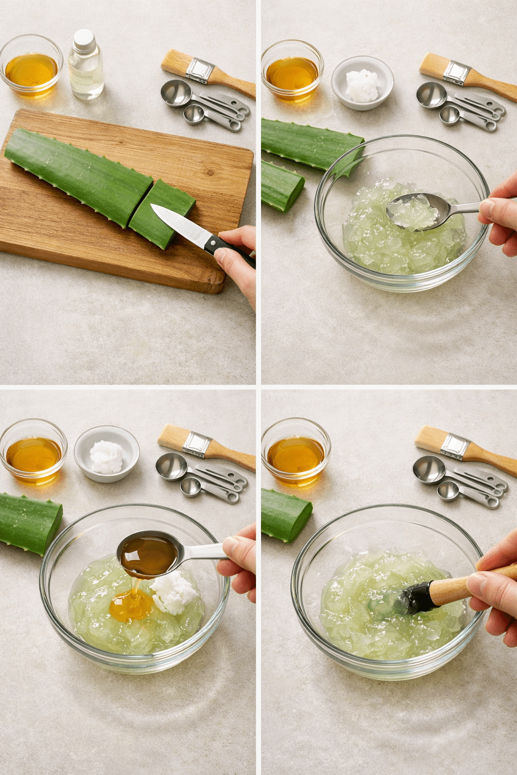 Common mistake to avoid: Don’t use aloe gel that looks brown or has a strong odor, which indicates oxidation. Fresh gel should be clear or slightly cloudy and smell mild or grassy.
