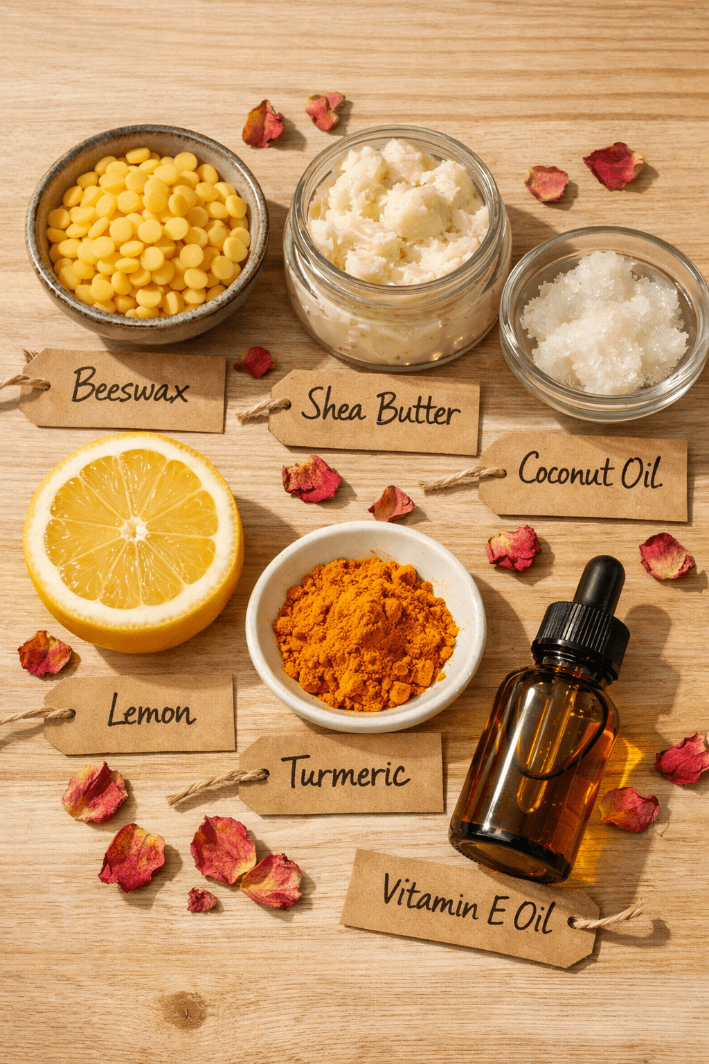 - A few drops of lemon essential oil (NOT fresh lemon juice in the balm β it’s too acidic and unstable in a balm formula)
