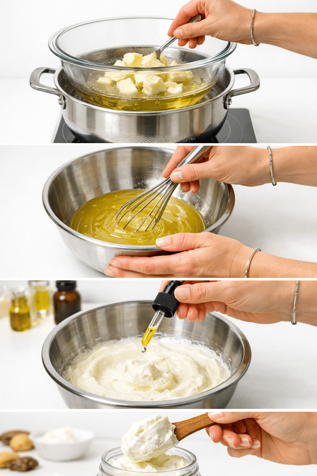 • The double boiler method prevents overheating delicate oils and maintains their beneficial properties