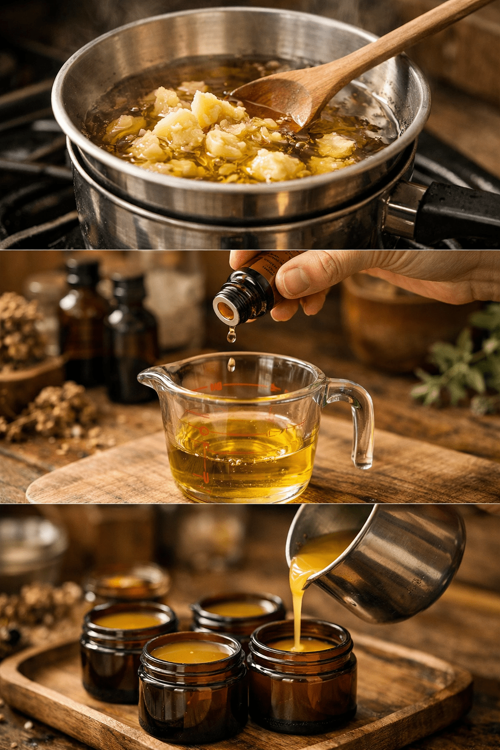 • Essential oils make up roughly 50% of the balm’s composition by active effect — add them after the wax mixture cools slightly to preserve potency [3]