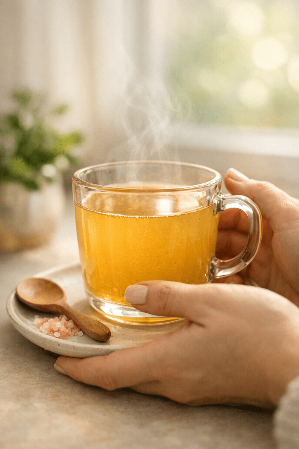 - Core ingredients: pink Himalayan salt, apple cider vinegar, fresh lemon juice, ginger, and warm water.