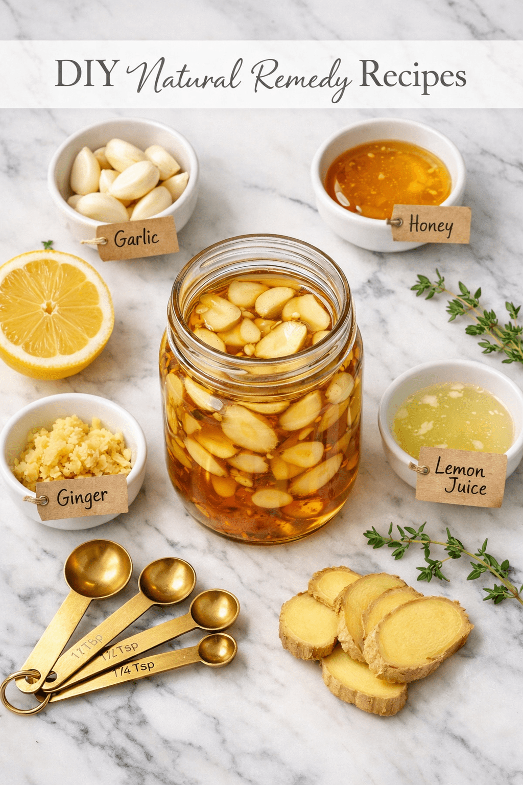 - Build a small natural remedy kit: raw honey, garlic, turmeric, oregano oil, and dried echinacea