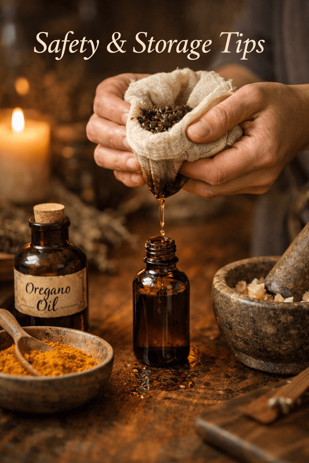 ⚠️ Common mistake: Using too much oregano oil. More is not better here — high concentrations can irritate mucous membranes. Stick to 2–3 drops maximum per serving.